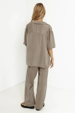 Hermosa Wide Leg Pocket Pants Stripe Print Tan