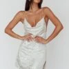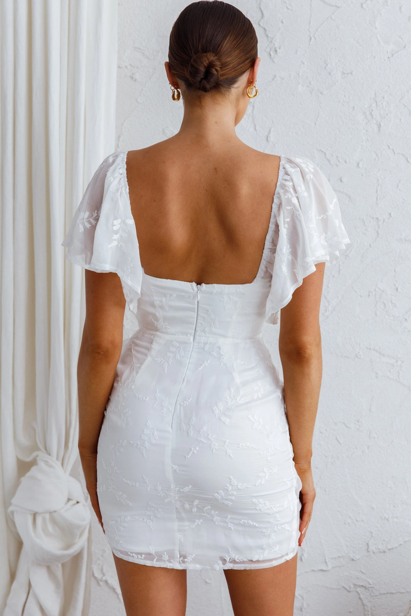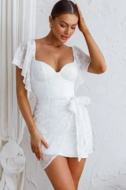 Aphrodite Molded Bust Angel Sleeve Wrap Dress Embroidered White