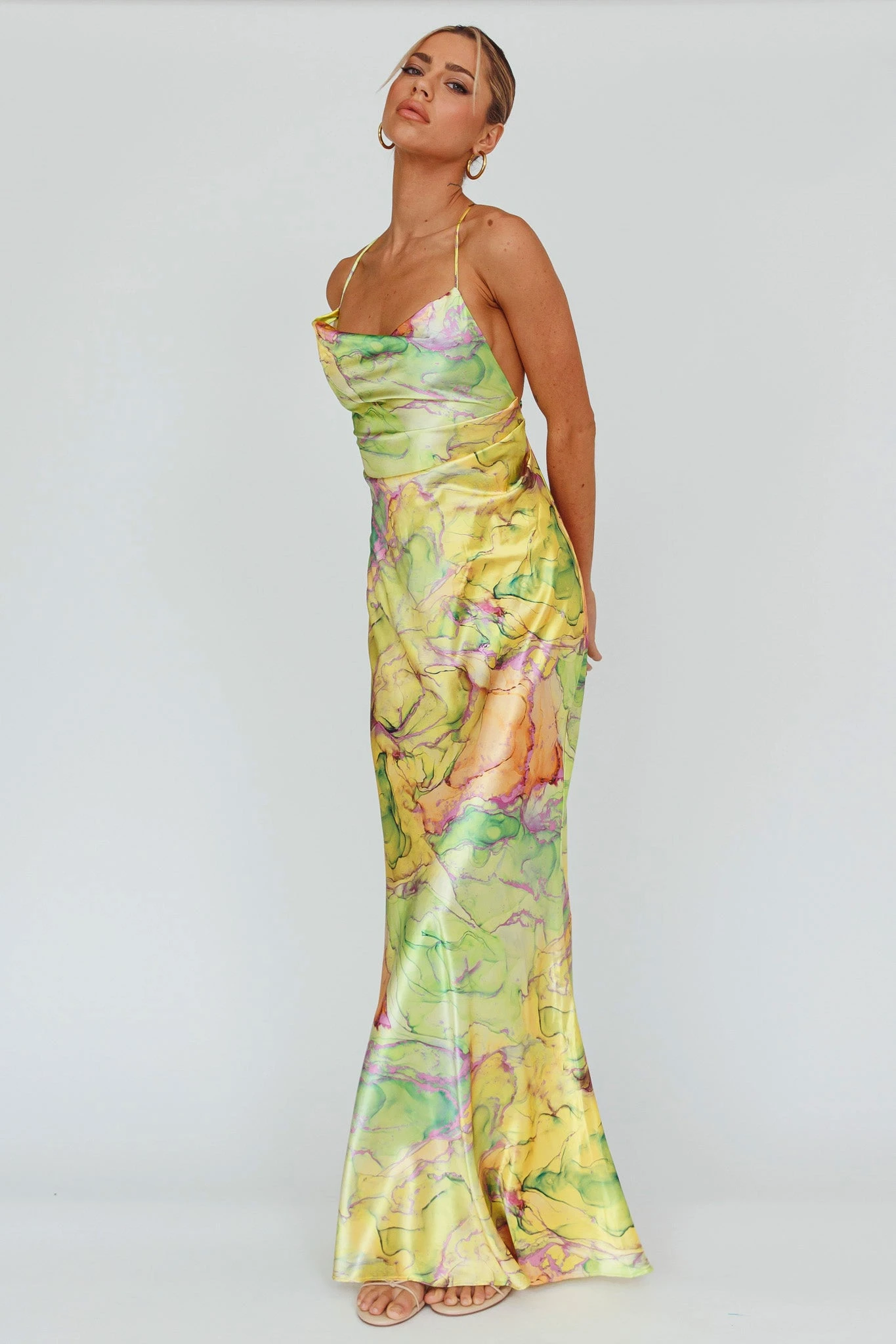 Make your grand entrance in our stunning Bailey maxi dress. We are in love with its strappy, tie-up back with chain feature. Perfect for a birthday or special occasion. Team it with perspex mules and a clutch for a head-turning look.