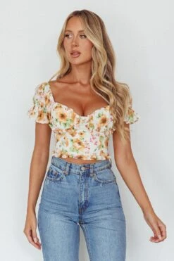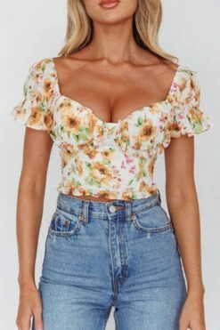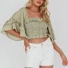 Hey there, cutie! You’ll be getting all the attention in our adorable Besito crop top. We are obsessed with its frill trim and girly puff sleeves. Perfect for a flirty first date teamed with jeans, tan mules and a tote.
