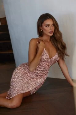Own the night in our stunning Block Party mini dress. Featuring a wrap style with sequin embellished fabric. Perfect for a bachelorette or birthday celebration! Team it with strappy, nude heels and a clutch for a look that won’t be forgotten.