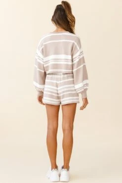 Carlo Drawstring Waist Shorts Striped Pattern Mocha