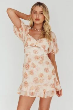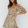 - Leaf print, beige mini dress