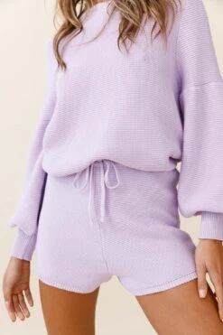 Hello, gorgeous! You’ll be turning heads in our super cute Cooper sweater. We are majorly crushing on that pretty purple shade and girly balloon sleeves. Perfect for a girls’ day out teamed with jeans or its matching shorts and white sneakers.