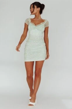 Daisy Chains Lace-up Back Mini Dress Green