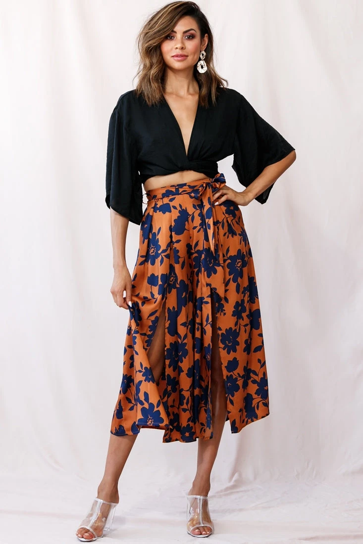 Pack your bags because these pants will have you wanting to go on a tropical vacay, stat. Featuring an on-trend midi length, breezy splits to show off your tanned pins, invisible zipper and a separate tie-up belt. We’re in love with the pretty floral print fabric. Team them with your favorite crop-top and wedges or crochet bikini top, sandals and a pina colada and hit the beach in style!