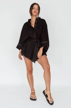 Breeze through your day in style in our chic Daytona Beach romper. Featuring a long sleeve, shirt style and removable waist tie, it’s perfect for weekend coffee dates with your girls teamed with a straw tote and slides.