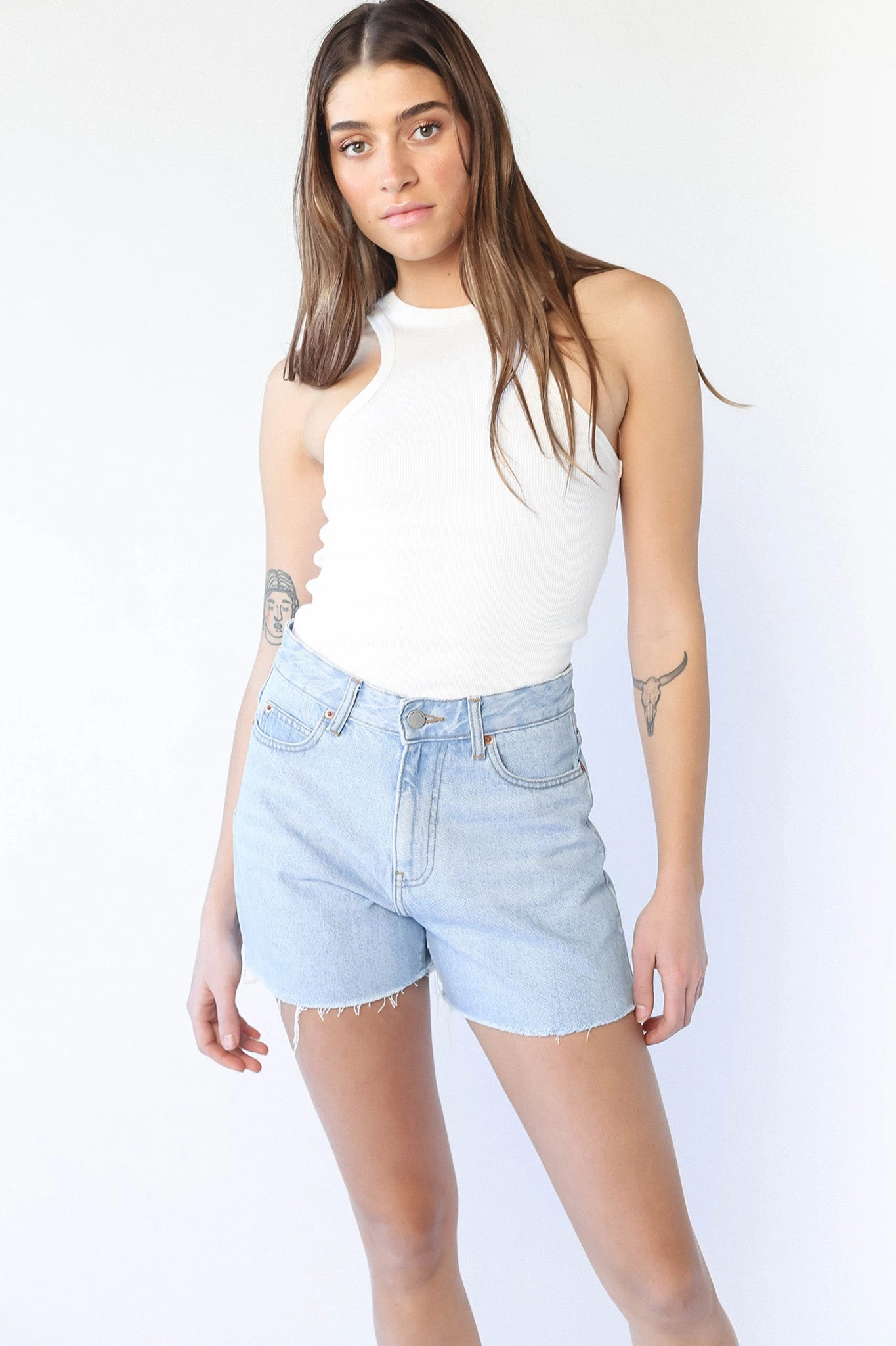 Nora Shorts Empress Light Blue is a sky high rise mum short, inspired by our best selling Nora Jean.