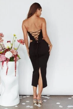 Steal the show in our gorgeous Dragonfly midi dress. Featuring a deep, V-neckline and pretty, lace-up back. It’s perfect for a wedding or birthday celebration. Team it with strappy, black heels and a clutch for a look that will make jaws drop.