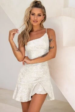 Turn heads in our gorgeous Eiza dress. Featuring the prettiest sequin embellishment detail throughout and a hot one-shoulder style. Perfect for a bridal shower or special occasion teamed with strappy white heels and a clutch. Cute!