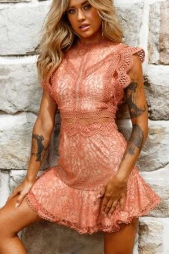 - Rose lace overlay dress
