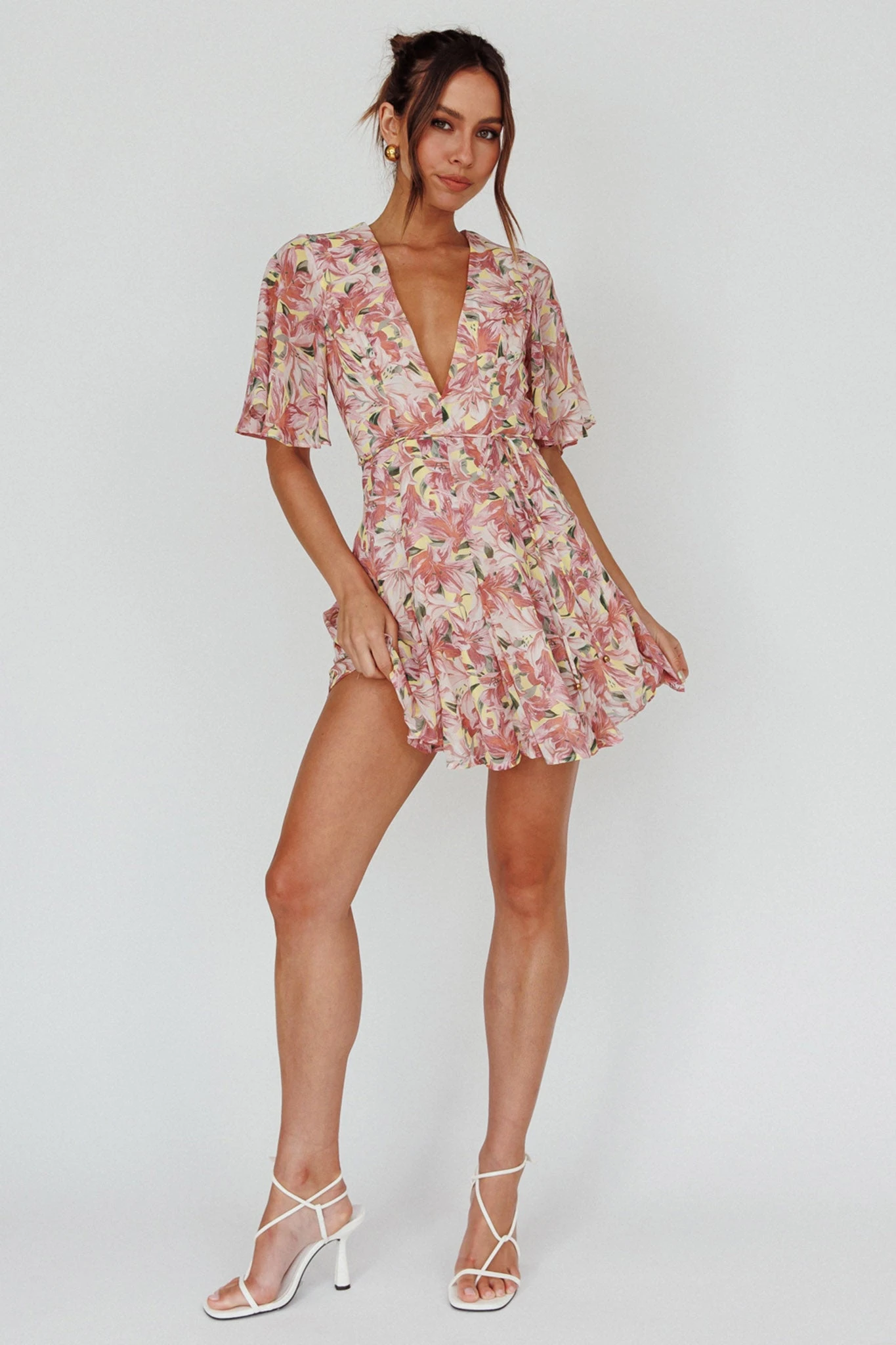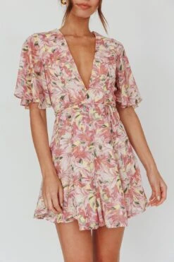 We a loving our chic Estelle dress. Featuring angel sleeves and a string tie around the waist. Perfect for brunching with your besties or happy hour teamed with your favorite mules and gold hoop earrings.