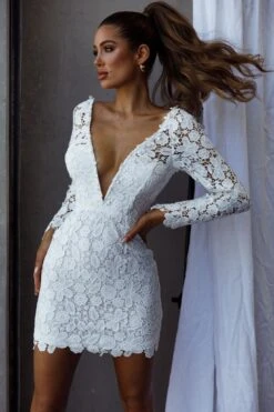 - White lace mini dress