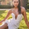Freja Long Sleeve Cowl Neck Lace Mini Dress Blue