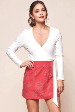 Body Party! Wrap Bodysuit is a great staple and can be sported with almost any look. Ribbed cotton texture make for a stunning piece. Wear under jeans or a high-waisted skirt and a leather jacket.