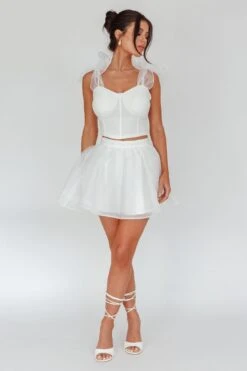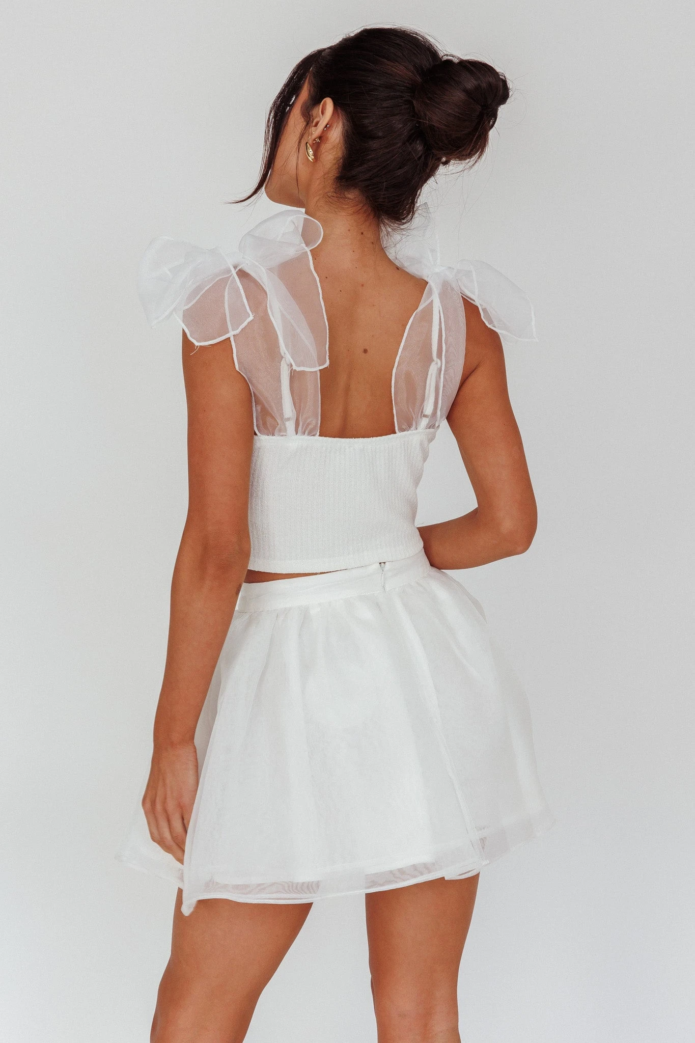 Hello, beautiful! Hit the town in our gorgeous High Class crop top. Featuring feminine, bow ties in the shoulders. Perfect for a date night with your lover. Team it with a mini skirt and mules for a look that will turn heads.