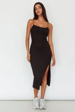 Cruise on by in our In My Element midi dress. We are in love with its simple but chic look and stretchy fabric to hug your curves. Perfect for running errands teamed with sneakers or dressed up with nude heels for an effortless-cool look we are all about.