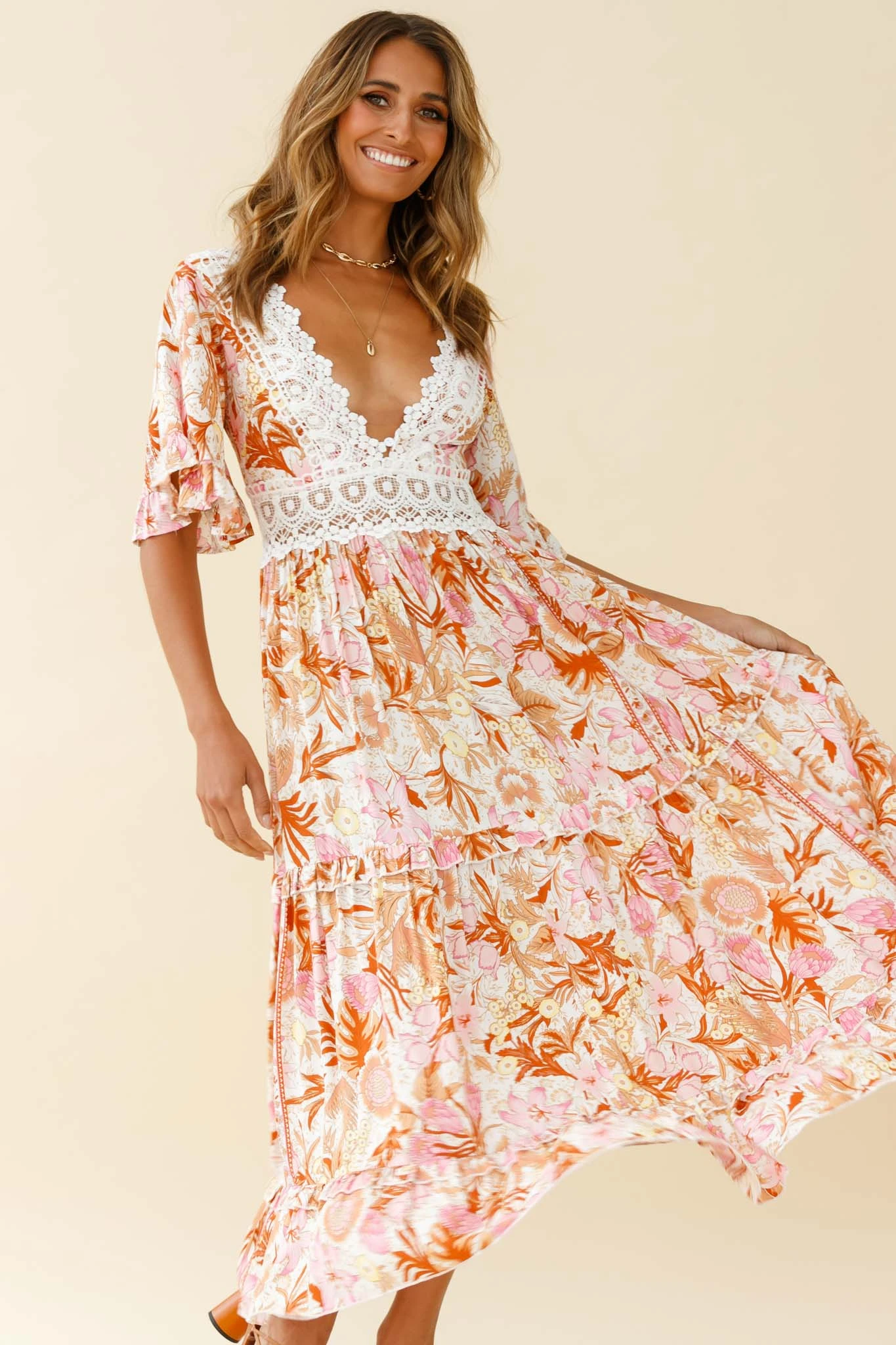 Channel your inner boho babe in our pretty Indio dress. Perfect for lunch with your ladies or a day exploring the vintage flea market, it features a deep V-neckline and back and gorgeous crochet inserts. Pair it with silver and turquoise gems and leather sandals for maximum boho vibes.