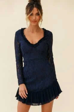Steal the show in our gorgeous Isabella dress. We are in love with that beautiful lace overlay and frill-trimmed open back! Perfect for a garden wedding or special birthday occasion teamed with nude heels, a clutch and pearl accent jewelry. Stunning!