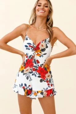 - White floral print romper