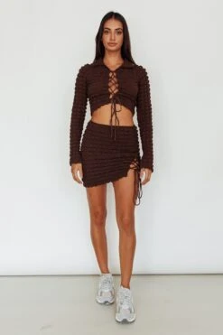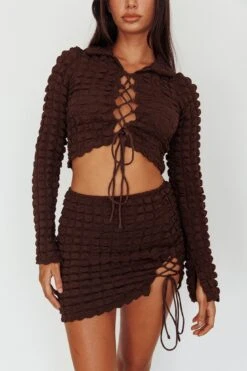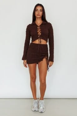 Hello, cutie! You will go straight to the best-dressed list in our Josseline crop top. Featuring a stretch fabric and lace-up front. It’s perfect for a hot date night with your crush. Team it with its matching mini skirt and mules for an It Girl look we are all about.