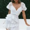 Turn heads in our gorgeous Kaari dress. We are obsessed with its lace ruffle detail along the neckline and that pretty lace overlay. Perfect for a bridal shower or graduation. Team it with white pumps and a clutch for a look we are loving.