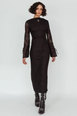 Steal the show in our gorgeous Kalia midi dress. Perfect for a romantic date night with your love. We are obsessed with its lace fabric and tie detail in the sleeves. Team it with black heels and a clutch for an unforgettable look.