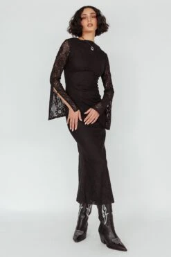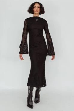- Black, crochet midi dress