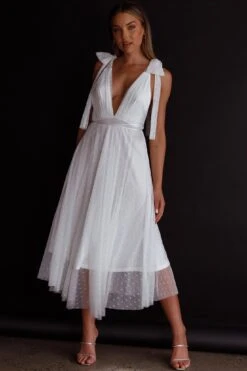 You will be flooded with compliments in our gorgeous Kathryn dress! Obsessed is an understatement when it comes those bow, tied shoulders and stunning hail spot mesh overlay. Perfect for wedding celebrations or a birthday soiree! Team it with white heels and a clutch for an unforgettable look!