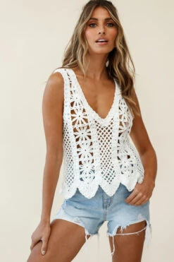 We’ve fallen in love with this Summery top. Perfect thrown over your bikini, a simple bra, or nothing at all (if you dare!). We are loving the intricate, floral, knit weave throughout. It’s giving us some major boho vibes. Team it with high waisted jeans or denim cut-off shorts for a cute look we can’t get enough of.