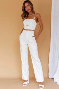 You will look super chic in our gorgeous Lyrics pants. Featuring a chic, straight leg cut and side pockets. Perfect for weekend brunch with your besties teamed with its matching crop top and mules.