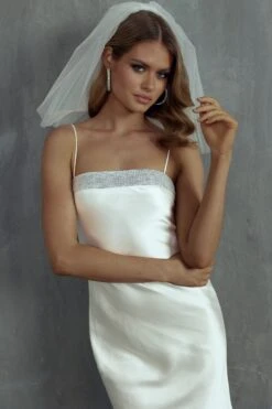 - White, satin maxi dress