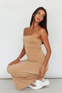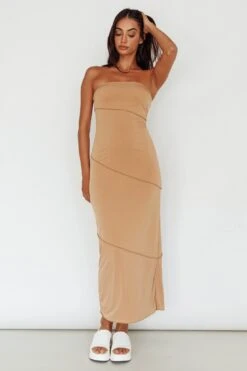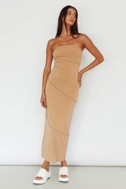 Turn heads in our chic Making Headlines midi dress. We are in love with its soft, figure hugging fabric and on-trend camel color. Perfect for weekend brunch with your besties or date night with your lover. Team it with strappy heels for a look we are loving.