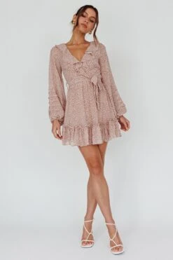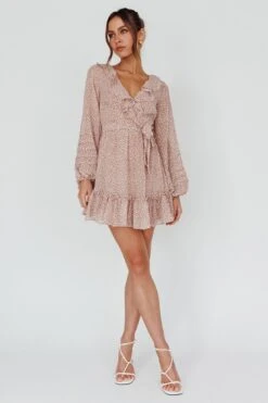 Make an entrance in our pretty Marcheline dress. Featuring long sleeves with pleat detailing, adjustable waist tie and ruffle hem. Perfect for a lunch date with bae teamed with tan boots and hoop earrings for a look we are loving.
