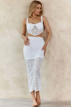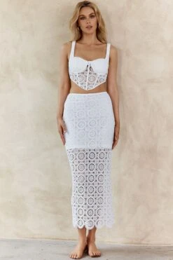 Make an entrance in our hot Milano crop top. We are in love with its pretty crochet lace throughout, perfect for weekend brunch dates with your besties. Team it with its matching midi skirt and mules for a chic look that’ll be sure to turn heads.