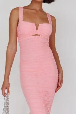 Make an entrance in our stunning Nadia maxi dress. Featuring a fishtail style and ruching throughout, we’re in love! Perfect for a wedding or prom! Team it with a clutch and nude heels for a look that will turn heads.