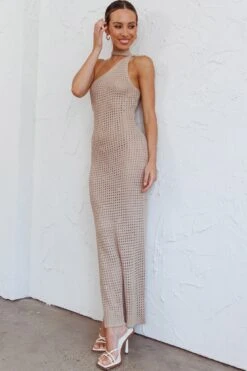 Heads with turn when you walk by wearing our super hot Next Level maxi dress. Featuring a crochet knit throughout and chic, one-shoulder style and halterneck that ties at the back. Perfect for rooftop cocktails at your fave bar with your bff’s. Team it with white heels and a tote for an unforgettable look.