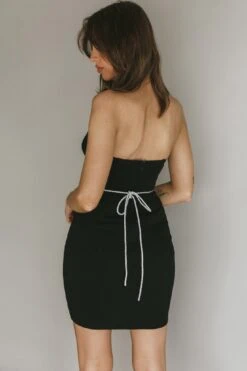 Make an entrance in our hot Nohemi mini dress. Featuring a cut-out waist with diamante strap detail that ties in the back, we’re obsessed! Perfect for a girls’ night out or birthday celebration teamed with a clutch and diamante mules!