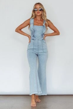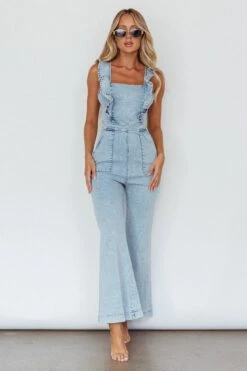 Nola Flared Ruffle Jumpsuit Blue