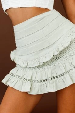 Perfect Timing Pleated Waist Frill Trim Mini Skirt Sage