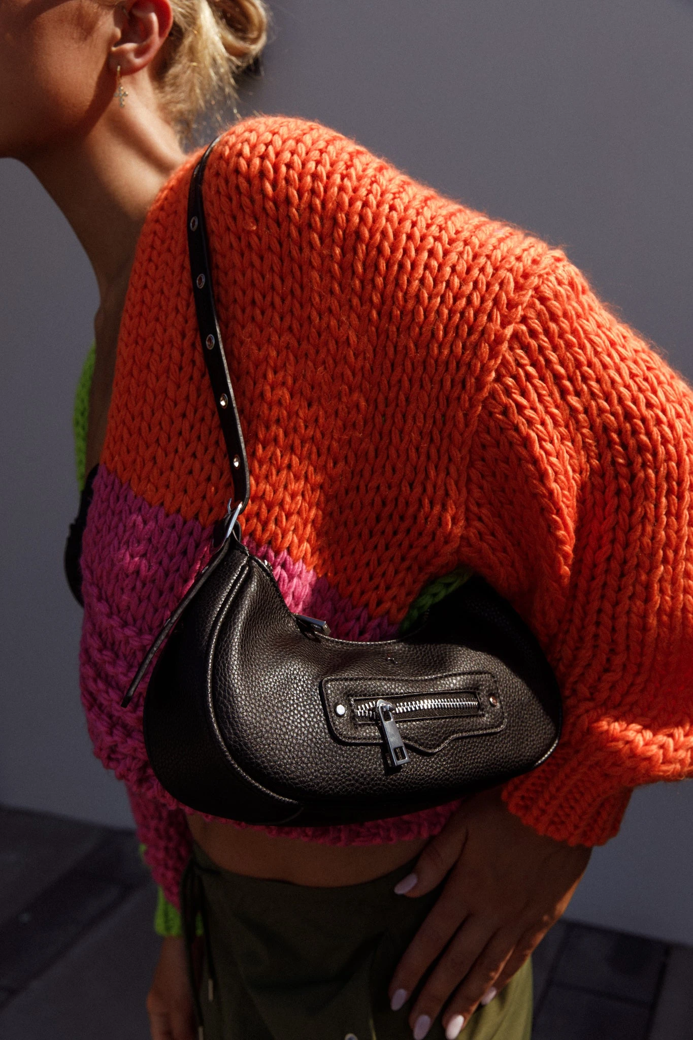 Put an edge into your ensemble with the MOTO shoulder bag. Team it with a chic midi dress and mules for an It Girl look.