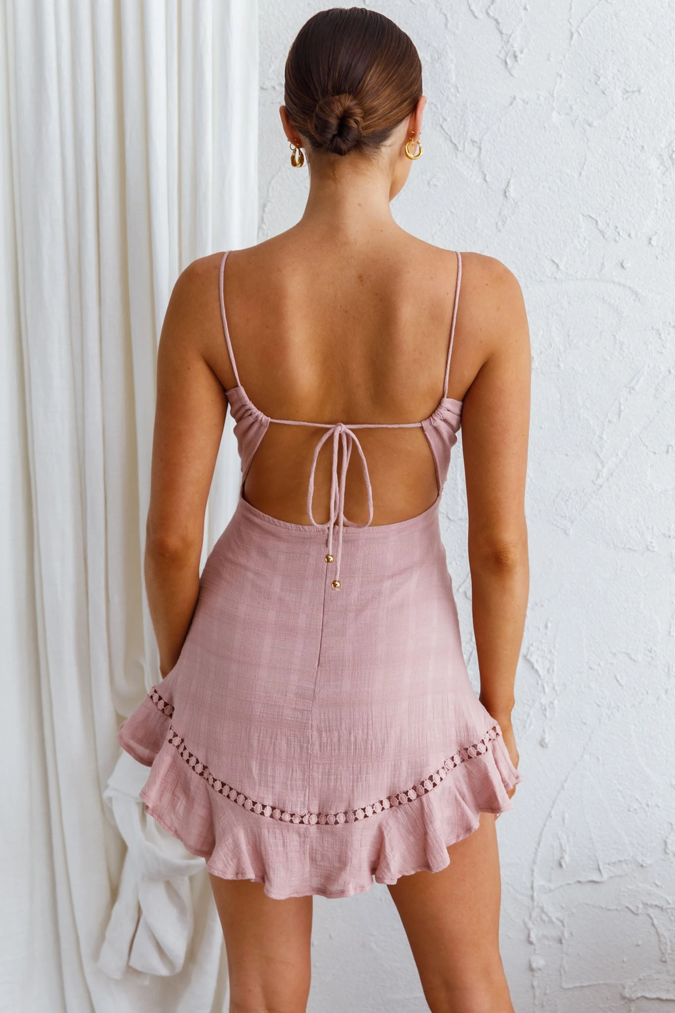 Make an entrance in our pretty Royale mini dress. Featuring crochet lace trim inserts and a super cute, tied back. Perfect for weekend happy hour with your besties or lunch dates with your crush. Team it with a tote and mules for a chic look we are loving.
