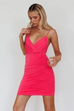 Get ready to be flooded with compliments in our hot Shake It Up mini dress. Featuring ruching throughout and a strappy, tie-up back. Perfect for a glitzy girls’ night out. Team it with silver heels and a purse and get ready to hit the dance floor.