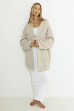 - Mushroom, chunky knit cardigan