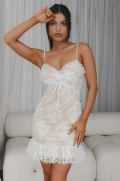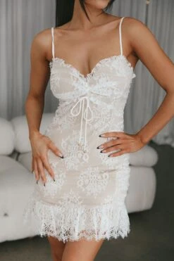 Steal the show in our gorgeous St Tropez dress. Featuring a stunning lace fabric throughout and frill hem detail. Perfect for a birthday celebration or date night! Team it with strappy, nude heels and satin clutch for an elegant look we are loving.