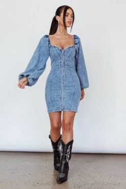 Make an entrance in our super cute Tasmyn mini dress. Featuring long, balloon sleeves and a zipper down the front. It’s perfect for weekend coffee dates teamed with mules and a tote for a look we are loving.