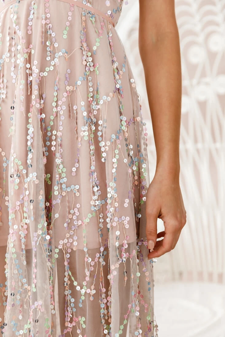 Omg we’re speechless. And so will everyone else be the moment you walk into a room wearing this dress. Featuring the prettiest sequin covered chiffon overlay, plunging neckline and string-tie back, the Tiara is the perfect party dress for the girl who likes to steal the show. Pair it with strappy heels and get ready to turn heads.