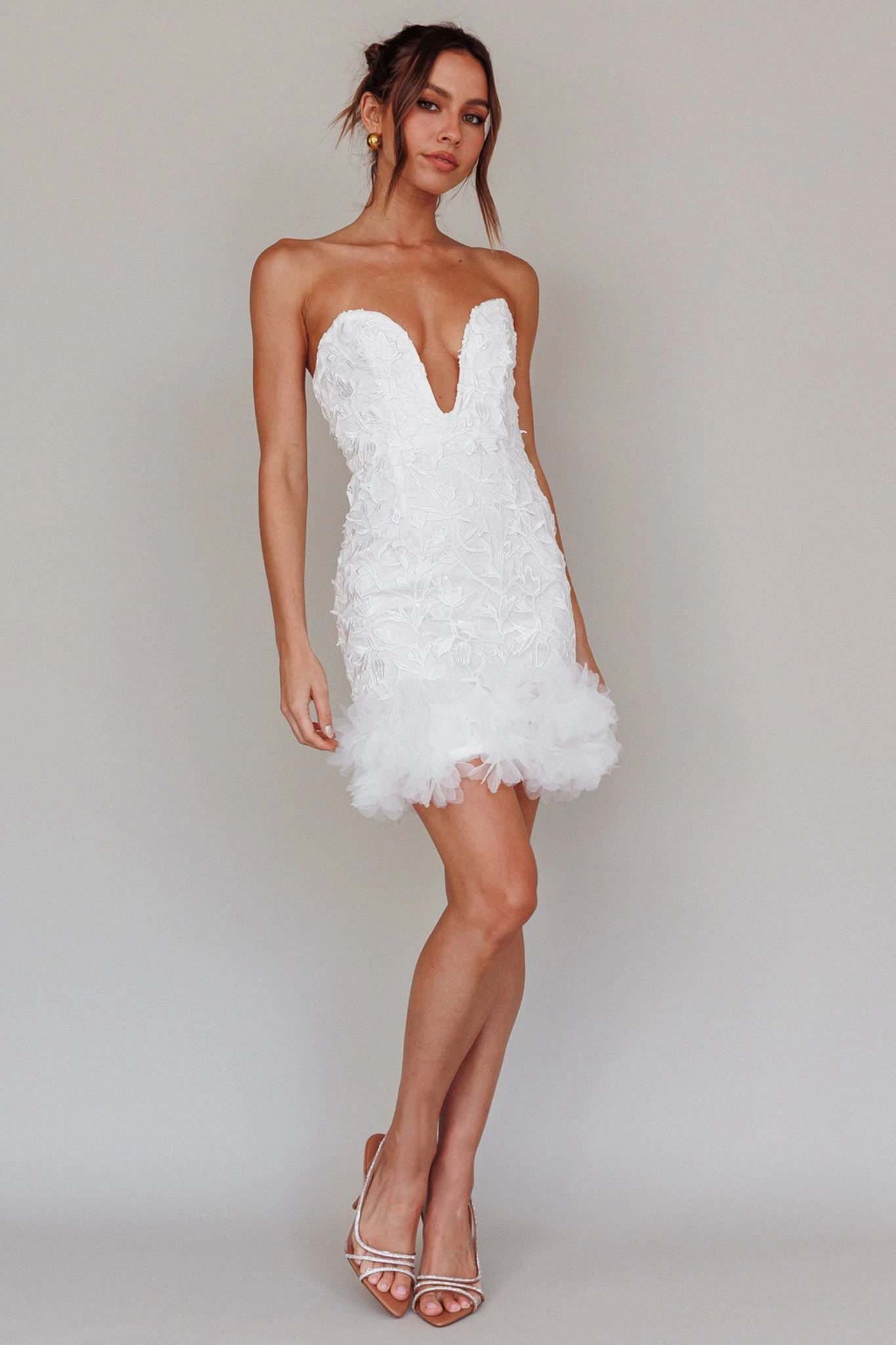 You will steal the limelight in our stunning Time Of My Life mini dress. We are obsessed with its pretty applique overlay and unique floral mesh hem. Perfect as a reception dress or wear it for a special birthday celebration. Team it with white stilettos and a clutch for a look that will make jaws drop.