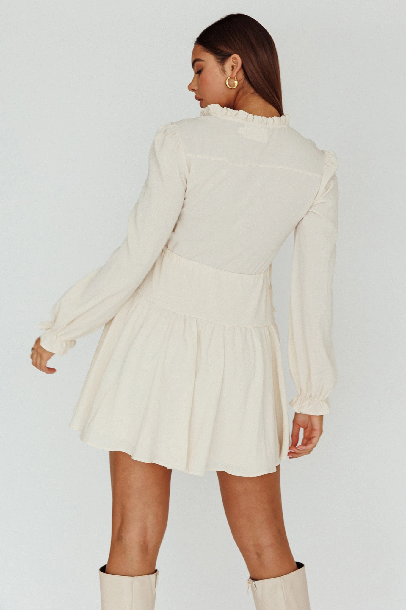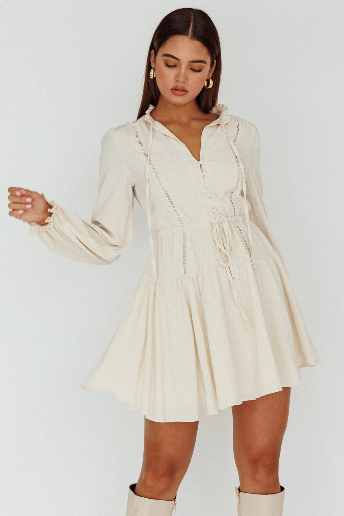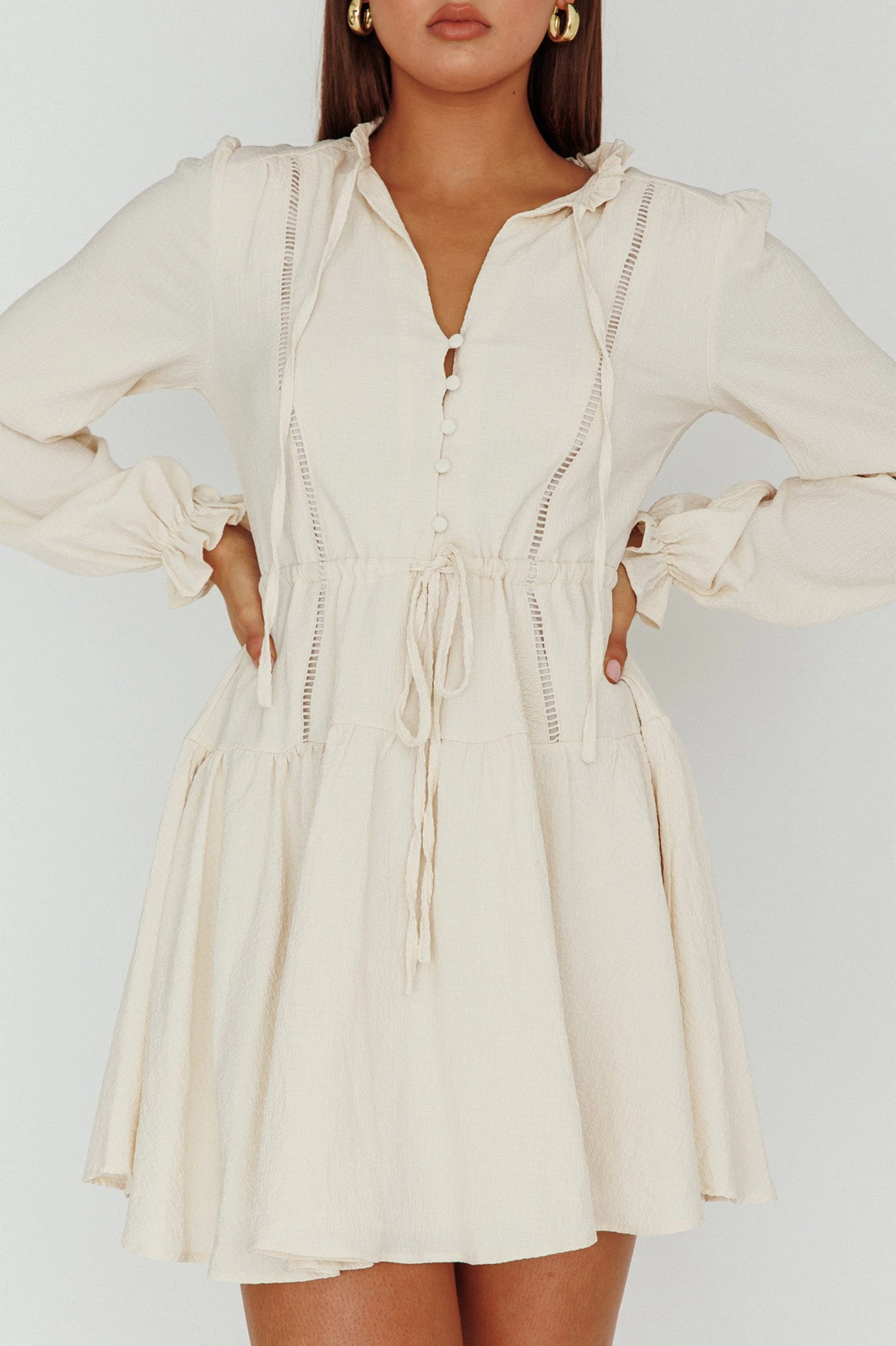 Hey there, cutie! We are in love with our adorable Waverly mini dress. Featuring long sleeves, and a drawstring waist, it’s perfect for a crisp day strolling the farmers markets teamed with riding boots and a tote.