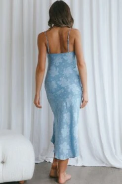 - Blue textured floral dress